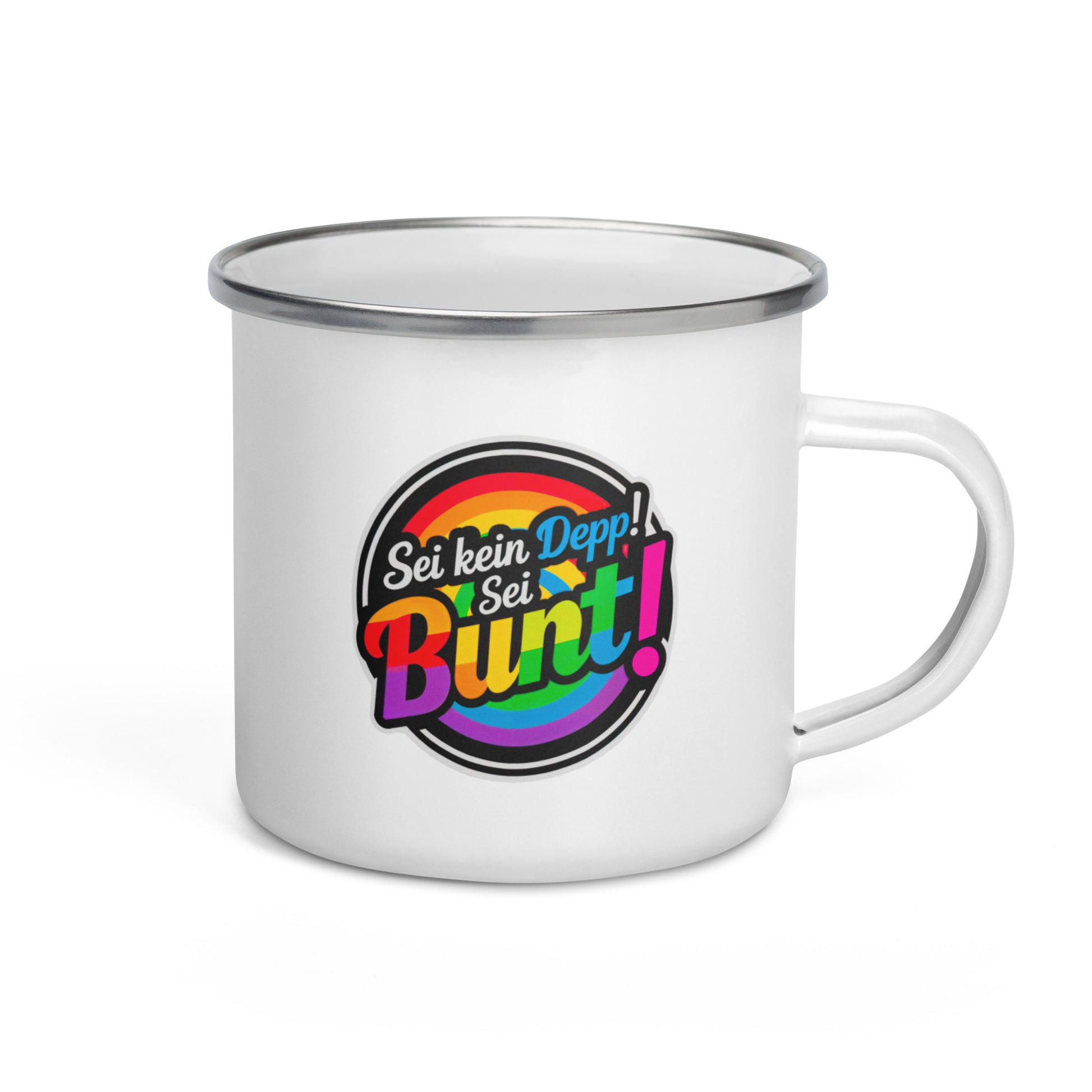 "Sei kein Depp, sei bunt!" - Emaille-Tasse